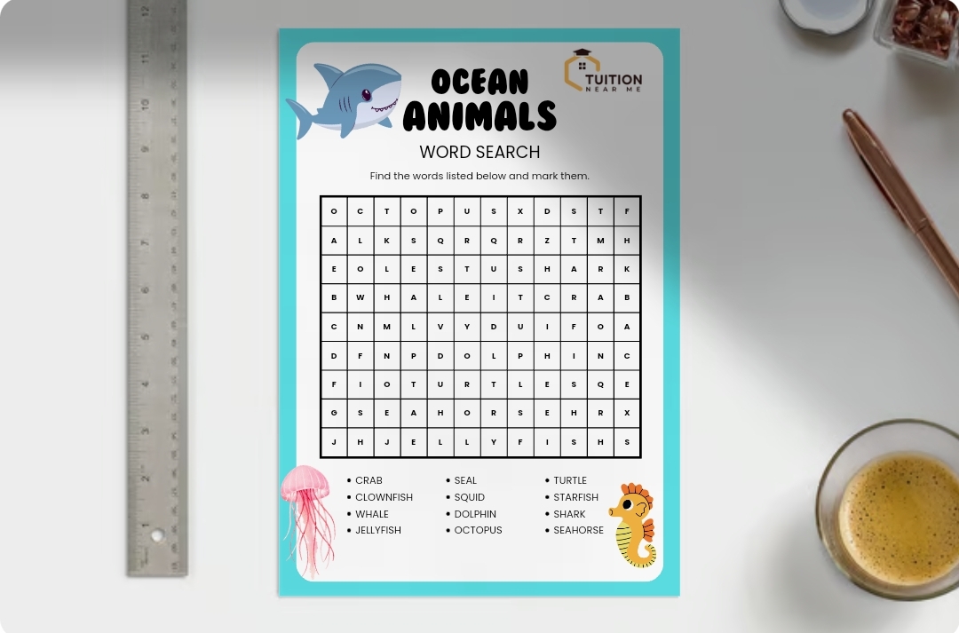 Introducing Tuition Near Me’s new worksheet: Ocean Animals Word Search!