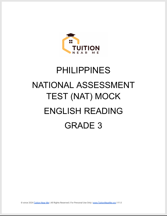 Introducing Tuition Near Me’s new product, the Philippines National Assessment Test (NAT) Mock English Reading Grade 3!