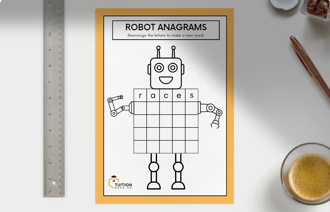 The Robot Anagram worksheet from Tuition Near Me is designed to provide an engaging and challenging activity for children aged 10 and above.