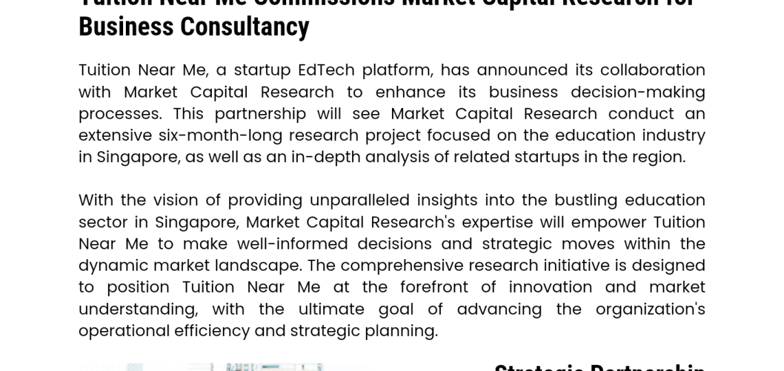 The collaboration between Tuition Near Me and Market Capital Research signifies a proactive approach to leveraging specialized expertise in data-driven analysis and market intelligence. It is anticipated that the outcomes of this partnership will not only benefit Tuition Near Me but also contribute to the overall advancement of the education sector in Singapore.